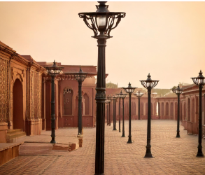 Ornamental poles are used in parks and plazas to enhance beauty while serving practical purposes.