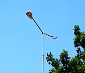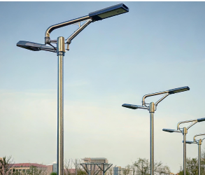 These poles are made to hold solar-powered street lights, featuring solar panels and batteries for energy-efficient lighting on roads.